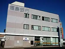 The Fukushima Bank Ltd. (株会社福島銀行 Kabushiki-gaisha Fukushima Ginkō) is a Japanese regional bank headquartered in Fukushima City, Fukushima Prefecture, Japan.[1] Founded on November 27, 1922, the company provides banking (deposits, loans, foreign exchange trading, etc.) and leasing services as well as credit card and credit guarantee services.[2] President and CEO, Takahiro Kato denies any intent to merge with Toho Bank Ltd., another regional bank located in Fukushima Prefecture.[3]