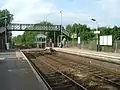 The station is unmanned, has no permanent buildings other than basic shelters and has a ticket machine on the Manchester platform - tickets must be bought prior to travel or on the train if using cash only. Service running information is offered via automatic announcements and timetable posters. The platforms are linked by footbridge, but there is step-free access via the level crossing to both platforms.[1]