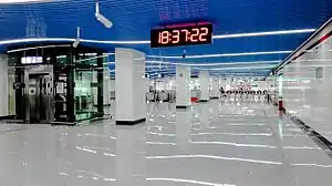 Fuzhou South Railway Station (Chinese: 福州火车南站站; pinyin: Fúzhōu Huǒchē Nánzhàn zhàn; Fuzhounese: [huʔ˨˩ t͡siu˥˥ huoi˨˩ ʒia˥˥ nɑŋ˨˩ ʒiɑŋ˨˦˨]) is a metro station of Line 1 of the Fuzhou Metro. It is located on Lulei Road at the underground of CR railway station in Cangshan District, Fuzhou, Fujian, China.[6] This station started operation on May 18, 2016.[7]