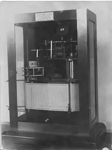 - Teletachograph, a tachograph, a device for registration and improvement of the running of spinning machines, "for remote control of machinery", which combines the functions of a clock and a speedometer (1931–1933).