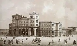 ![]() Empfangsgebäude des Görlitzer Bahnhofes in Berlin, an 1872 painting depicting the station entrance hall | |