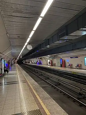 Göztepe is an underground station on the Fahrettin Altay—Evka 3 Line of the İzmir Metro in Göztepe, Konak. Located under İnönü Avenue, it consists of two side platforms servicing two tracks. Connection to ESHOT bus service is available at street level.