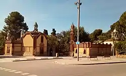 The other three entrances to the estate became obsolete with the construction of Avinguda Diagonal: one of them still stands outside the cemetery of Les Corts, although its iron grille has been moved to the Gaudí Museum in the Parc Güell; another was restored in 1982 by the University of Barcelona and installed at the Institut de Geologia Francesc Almera; while the third was demolished to make way for the Pharmacy faculty, but rebuilt in 1957 adjacent to this building.[5]