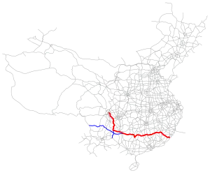 The Xiamen–Chengdu Expressway (Chinese: 厦门—成都高速公路), designated as G76 and commonly referred to as the Xiarong Expressway (Chinese: 厦蓉高速公路) is an expressway in China that connects the cities of Xiamen, Fujian, and Chengdu, Sichuan. When complete, it will be 2,192.2 km (1,362.2 mi) in length.