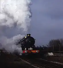 GWR 4073 Class 5029 Nunney Castle is a Great Western Railway Castle Class steam locomotive. It was built at the GWR's Swindon Works in 1934, being outshopped on 28 May and taking the name of Nunney Castle near Frome, Somerset. The locomotive was used in many publicity and "life on the railway" type of photographs. During the first day of the evacuation of civilians during World War II, the locomotive hauled trains carrying children being taken from London to the safety of the countryside. Nunney Castle was also used to haul the Royal Train in October 1957 from London Paddington station to Gloucester.