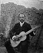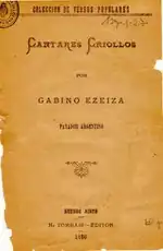 Gabino Ezeiza, nicknamed Negro[2] (February 3, 1858 – October 12, 1916), was an Argentine musician. Ezeiza was one of the greatest performers in the art of the payada. He became renowned, both in his native land and in Uruguay, after a memorable encounter with Oriental payador Juan de Nava, who carried at the time a certain halo of invincibility. This celebrated contest was held in the city of Paysandú on July 23, 1884, in front of one of the largest crowds ever to gather for a payada duel (in Argentina July 23 is established as the "Day of the Payador" in commemoration of this event).[3]