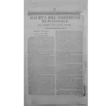 When the Gaceta was created in 1807,[2] the issues were four pages long and published on Wednesdays and Saturdays under the name La Gazeta de Puerto-Rico. By the 1820s the publication went by the name Gaceta del Gobierno de Puerto-Rico and was published on Tuesdays, Thursdays and Saturdays. In 1859 the newspaper's title was shortened to Gaceta de Puerto-Rico. It was a daily newspaper from 1897 to 1902.[1]