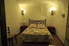 Tútugi refers to an Iberian necropolis on the hill above the modern village. Since the siege of Galera in 1570, the hill has also been known as the Cerro del Real.[6] Tutugi is also sometimes used more generally as the placename for Galera in ancient times.[7] The necropolis was initially investigated by treasure hunters. However, there have since been proper excavations of the site, which has several types of tombs. The most numerous type of tomb consists of a rectangular chamber, covered by a circular tumulus and reached through a long passage.