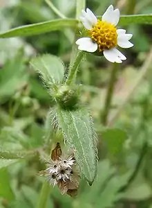 Galinsoga quadriradiata is a species of flowering plant in the family Asteraceae which is known by several common names, including shaggy soldier,[2][3] Peruvian daisy, hairy galinsoga. Its native home is apparently central Mexico, although it has become naturalized in many other places (North and South America, Europe, Japan, Philippines, the northern India, Nepal, etc.).[4][5]
