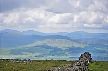 The Galloway Hills are part of the Southern Uplands of Scotland, and form the northern boundary of western Galloway. They lie within the bounds of the Galloway Forest Park, an area of some 300 square miles (800 km2) of largely uninhabited wild land, managed by Forestry and Land Scotland. The unusual place names reflect a mixture of the Old Norse and Scottish Gaelic languages and hint at the range of influences which have acted on society within the area over the centuries.