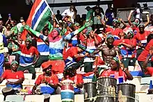 Gambia continued to impress in the round of 16, defeating Guinea 1–0 to advance to the quarter-finals of the tournament.[4][5] After a goalless first half, Gambia lost 2–0 to host Cameroon in the quarter-final in Douala.[6]
