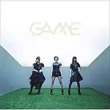 Two cover sleeves for Game were photographed by Japanese photographer and designer Mari Amita.[10][25][26] The standalone CD artwork has Perfume inside a four-by-four room, floored with synthetic grass and powered by strong ceiling lighting. The album's title is superimposed on the ceiling. The standalone CD booklet features shots of Perfume inside that room, with no other picture otherwise.[10] The CD and DVD artwork feature Perfume in a dark room, holding several LED lamps with the album's title superimposed them. The CD and DVD booklet features different shots of Perfume in the four-by-four room and shots of Perfume in the dark room.[25] The digital release uses the standalone CD artwork.[26] The booklet and photo shoot was designed by Mayuko Yuki.[10][25][26]