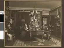After Hans and Bolette Puggaard's daughter Marie married the politician Orla Lehmann in 1844 the estate was also frequented by many of the leading politicians of the time. Lehmann was a key figure in the adoption of the Constitution of Denmark in 1849. As a gift to his children, Puggaard also commissioned the architect Michael Gottlieb Bindesbøll to build another country house in the area. It was named Krathuset for its location in Ordrup Krat.[2]