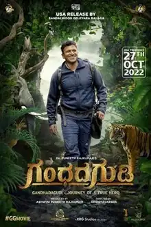 Gandhada Gudi (transl. The abode of Sandalwood) is a 2022 Indian Kannada-language docudrama film directed by Amoghavarsha JS.[3] It stars himself and Puneeth Rajkumar in lead roles. The film features the final appearance of actor Puneeth Rajkumar.[4] The film released on 28 October 2022.[5][6]