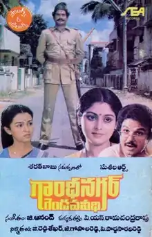 Gandhinagar Rendava Veedhi (transl. Gandhinagar 2nd Street) is a 1987 Indian Telugu-language comedy film, produced by G. Reddy Shekar, J.Gopal Reddy and P. Pardhasaradhi Reddy under the Suseela Arts banner, Presented by Sarath Babu and directed by P. N. Ramachandra Rao. It stars Rajendra Prasad, Chandra Mohan, Gautami and music composed by G. Anand. The film is the debut of actress Gautami in the film industry and was released on 16 July 1987.[1] The film is a remake of the Malayalam film Gandhinagar 2nd Street (1986).[2]