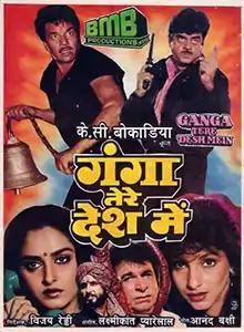 Ganga Tere Desh Mein (transl.Ganga in your country) is a 1988 Bollywood action drama film directed by Vijay Reddy,[1] starring Dharmendra, Shatrughan Sinha and Jaya Prada.[2][3] The movie is a remake of director's own 1987 Kannada movie Huli Hebbuli.