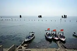 Gaoyou Lake (Chinese: 高邮湖; pinyin: Gāoyòu Hú) is the sixth largest freshwater lake in China, it is located between Anhui Province and Jiangsu Province. In a sense Gaoyou Lake is a manmade lake, and its creation is part of a long story about flood control and hydraulic engineering in ancient China. Gaoyou Lake is now part of the Huai River system as the Huai River flows south through Gaoyou Lake on its way to the Yangtze River and the Pacific.[1] It is about 39 kilometres (24 mi) long and 30 kilometres (19 mi) wide, covering approximately 674.7 square kilometres (300 sq mi).[2]