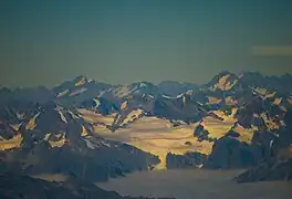 The Garden of Eden Ice Plateau is a large ice field on the western side of New Zealand's Southern Alps / Kā Tiritiri o te Moana. At over 9 km (5.6 mi) long, the Garden of Eden is one of the largest ice fields in New Zealand, along with the equally-sized Garden of Allah Ice Field which sits just to the north.[2] The ice field is one of many geographic features in the area between the main divide of the Southern Alps and the Adams Range which share biblical names, a convention first established by the earliest explorers to the area.[3] The Garden's remote location and difficult conditions make research difficult, especially with restrictions on helicopter landings imposed through the designation of the area as Adams Wilderness Area in 2003.[1][2] Despite this, the ice plateau has been a popular destination for tramping groups for over 80 years, with access routes from both coasts and easily reachable areas once on the plateau itself.[4]