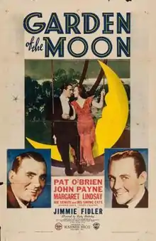 Garden of the Moon is a 1938 American comedy film directed by Busby Berkeley and screenplay by Jerry Wald and story by Richard Macaulay. The film stars Pat O'Brien, Margaret Lindsay, John Payne, Johnnie Davis, Melville Cooper and Isabel Jeans.[1][2][3] The film was released by Warner Bros. on October 1, 1938.