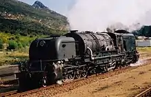 The Australian Standard Garratt was designed in 1942, for use on 3 ft 6 in (1,067 mm) gauge railways, in the critical period of World War II following the Japanese bombing of Darwin in 1942, and aerial attacks on other northern Australian centres.[55] It was a 4-8-2+2-8-4 locomotive, designed in Australia and constructed by a number of Australian railway workshops. Several design problems with the class emerged, and use of the locomotive encountered resistance from the drivers' union, especially in Queensland.[56] Most were withdrawn at the end of the war,[8] although a number continued to operate successfully in Tasmania.[57]