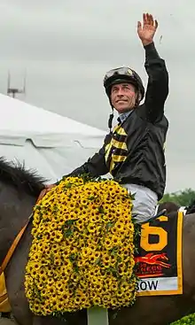 Coming back in 2013, he won the Preakness Stakes on Oxbow and added additional wins to his lifetime total, including an international victory in the Shergar Cup at Ascot Racecourse that raised his total win record in the United Kingdom to 50.[17] By 2014, his earnings stood at $236,951,490 and his North American wins were at 4,988.[1] As of 2015 he had 139 international wins in six nations in addition to his North American records.[5] He reached his official 5,000th North American win at Santa Anita Park on February 13, 2015, on a horse named Catch a Flight, trained by Richard Mandella.[20]
