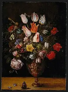 Gaspar van den Hoecke, Flowers in a Vase, Oil on panel, 49.8 x 36.2 cm, first quarter 17th century. Brooklyn Museum