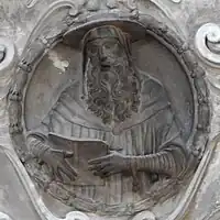 | The rediscovery and the reintroduction of effigies in sculpture began during the second half of the fifteenth century, and their spread in many Italian cities, including Brescia, occurred under circumstances that are still not fully clarified.[11] The origins of this trend are likely to be found in Florence, thanks to the antique collection of the Medici, with footholds in the courts of Naples and Ferrara.[12] The effigies in profile gained a wide dissemination, especially thanks to their versatility as a complement to the architectural and the increased accessibility of sources, including ancient coins and medals.[13] The ancient bust, however, was more freely interpreted as a modern equivalent of the classic examples, the originals of which were, however, very difficult to find in the most prestigious collections of the time.[14] |