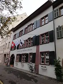 Gasthof zum Goldenen Sternen is the oldest inn in Basel, Switzerland founded in 1349. It is a part of the Swiss history, because in its rooms on 13 July 1501, the ten messengers of the Federal States were received by the Baslers for a welcome drink. [1] In 1964, for a road widening, it was relocated from Aeschenvorstadt. The building was dismantled brick by brick, and in 1973โ€“74 it was rebuilt at St. Alban-Rheinweg to its original shape. [2]