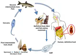 - 1 2 Tang, Ze-Li; Huang, Yan; Yu, Xin-Bing (2016-07-06). "Current status and perspectives of Clonorchis sinensis and clonorchiasis: epidemiology, pathogenesis, omics, prevention and control". Infectious Diseases of Poverty. 5 (1): 71. doi:10.1186/s40249-016-0166-1. ISSN 2049-9957. PMC 4933995. PMID 27384714.