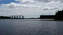 Draveurs Bridge (highway 50-route 148) crossing Gatineau River (view upstream on October 7, 2018, from Jacques-Cartier street).