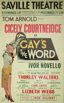 Gay's the Word is a musical with book and music by Ivor Novello and lyrics by Alan Melville. The musical is a backstage comedy that parodies Novello's own swashbuckling Ruritanian romance plots.[1] The story centres on Gay Daventry, a bankrupt operetta producer who opens a drama school at her country house. This also turns out to be unsuccessful, but it leads to a theatrical comeback for Gay.