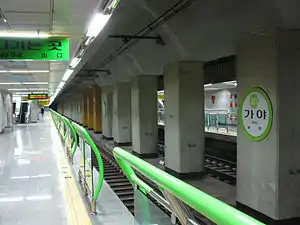 Gaya Station (Korean: 가야역; Hanja: 伽倻驛) is a station on the Busan Metro Line 2 in Gaya-dong, Busanjin District, Busan, South Korea. The station is unrelated to the Gaya Station which used to be operated by Korail.