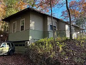 Gaylordsville station is a former train station in Gaylordsville, Connecticut. The station building was built in the 1918, replacing the Merwinsville Hotel as the local depot, to serve passengers on the Housatonic Railroad.[2] Shortly after its closure, the station was purchased by former New York advertising executives, Jean & Cle Kinney.[3] In October 1971, the couple relocated the structure to a nearby hill on River Road and converted it into their own unique and creative home.[4]