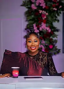 Gbemi Olateru Olagbegi is a Nigerian former broadcaster at The Beat 99.9 FM[1] (she resigned in December 2021[2]), entrepreneur and co-host of "Off-Air with Gbemi & Toolz" podcast.[3] Gbemi is the granddaughter of late Olowo of Owo Sir Olateru-Olagbegi II KBE. In 2008, Gbemi won the on-air personality of the year at the Future Awards Africa.[4] In 2015, Gbemi founded Gbemisoke shoes.[5] A shoe line created for women with difficulties in shopping for the right shoe size. At the fifth edition of the Arise Fashion Week, Lagos in 2018, Gbemi walked the runway for FIA Factory. In 2019, Gbemi became one of the faces from Megalectrics Ltd for Rémy Martin.[6]