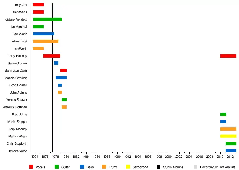 • Terry Halliday – vocals, rhythm guitar, synthesiser (1975–1979, 2010–present)