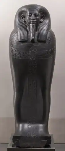 Gemenefhorbak was the "Vizier of the North",[2] meaning that he exercised his authority over Lower Egypt. He is mainly known from his meta-graywacke sarcophagus which is now in the Museo Egizio (Turin 2201); on it, the carving of a necklace with the goddess Maat is a sign of his judicial office.[3] The sarcophagus is also carved with a chapter of the Book of the Dead, as well as Gemenefhorbak's numerous titles;[4] here he is also provided with the rather unusual title of "Controller of the great courts" (Ḫrp ḥwwt wrwt).[2]