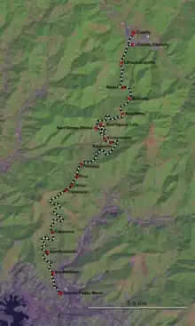 In 1953 the extension in regression was finally realized, entirely in the road, from the old to the new terminus station, called Casella-Paese,[3][5] while the Casella-Deposito station remained active only as a technical stopover.
