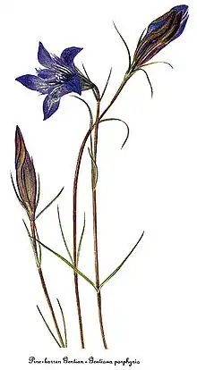 Gentiana autumnalis, the pine barren gentian, is a 1–2 ft (30–61 cm) tall flowering plant in the Gentianaceae family. It is native to eastern North America coastal pinebarrens from New Jersey to South Carolina.[2][3] Fire suppression, invasive weeds, and the altering of natural water flows all pose threats to rare native populations of G. autumnalis.[4][5][6]