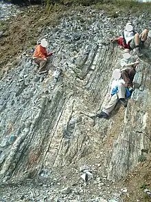 Kink band in sedimentary sequence (Livinallongo Formation, Ladinico Inferiore, Dos Capèl geological path, Predazzo)