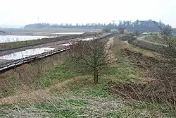 At the retreat of the glaciers, wind blown powdered rock known as loess was deposited over the whole county, forming thin layers under a metre thick. This reddish clay is easily formed into bricks at the lowish temperatures attainable in a wood-fired kiln and gained the name brickearth. It gave rise to rural brick-making industries scattered throughout the county. It also makes for fine, easily cultivated and fertile soils.[2][3]