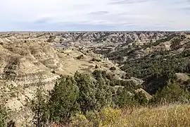 Pliocene erosion created the Red River Valley, as a tributary of the Cheyenne River eroded a gently sloping escarpment 1000 feet down (the ground surface of the valley is higher, due to glacial and lake bed sediments). The Killdeer Mountains are up to 1300 feet above the Little Missouri River, leading to inferences about the previous height of the plain.[4]