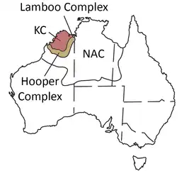 The Lamboo Complex is a series of exposed and interconnected mountain (orogenic belts) belts, which run along the southeastern margin of the Kimberley Craton. The Hooper Complex is similar to the Lamboo Complex but lies to its west, on the southwestern margin of the Kimberley Craton. The two complexes are considered as displaced parts of a single feature.[18][9]