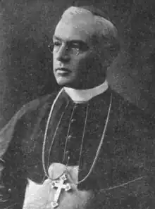 On January 2, 1907, Guertin was appointed the third bishop of the Diocese of Manchester by Pope Pius X.[4] He received his episcopal consecration on March 19, 1907, from Archbishop Diomede Falconio, with Bishops Matthew Harkins and Michael Tierney serving as co-consecrators.[4] After his consecration, Guertin moved into the rectory at the cathedral and promised parishioners there that the parish would remain an English-speaking one.[2] Between 1907 and 1926, Guertin added sixteen new parishes in the diocese; five were French-speaking and two were Polish-speaking. During World War I, Guertin had the diocese purchase a $15,000 war bond; he purchased out of his own funds $5 war saving stamps for each student in the cathedral parish school.[2]