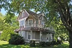 George B. Hamilton House is a historic home located in the city of Cuba in Crawford County, Missouri. It was built about 1896, and is a 2+12-story, irregular shaped, Queen Anne style frame dwelling with Eastlake movement detailing. It has multiple projecting bays and features fishscale shingles and elaborate spindlework in gable ends and porch balconies.[2]:6