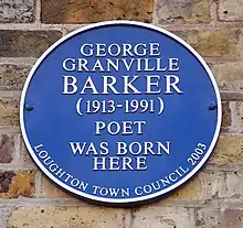 He then travelled to the United States, where he began his longtime liaison with writer Elizabeth Smart, by whom he had four of his fifteen children.[10] Barker also had three children by his first wife, Jessica.[11] He returned to England in 1943. From the late 1960s until his death, he lived in Itteringham, Norfolk, with his wife, the writer and journalist Elspeth Barker. In 1969, he published the poem At Thurgarton Church, the village of Thurgarton being a few miles from Itteringham.