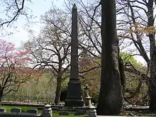 A news service took a photo of him and his wife, Elizabeth Curtis Williams Grinnell, on Grinnell Glacier in 1925.[9] He was still a traveler and explorer into his late seventies, but had a heart attack when he was 79 at home in New York in July of 1929. Despite a poor prognosis he recovered, slowly. Other illnesses kept him in the East in his final years, and Grinnell died April 11, 1938.[2] He was interred in Woodlawn Cemetery in the Bronx, New York City.