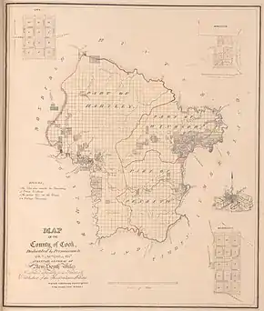 in 1827, Bowen was part of Hamilton Hume's expedition in Blue Mountains, searching for alternative routes, avoiding the steep descent at Mount York, via which to descend the western escarpment of the Blue Mountains.[7][8] He surveyed the boundaries of the County of Cook,[9] one of the Nineteen Counties, within which the colonial government allowed settlers to take up land under Governor Darling's order of 1829.[10]