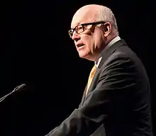 As Arts Minister, Brandis received significant criticism from the arts industry for a $105 million cut to the Australia Council for the Arts funding in the 2015-16 Australian Federal Budget.[36][37] The money was reallocated to a new program, The National Program for Excellence in the Arts (NPEA). The NPEA in turn has been criticised by many artists and arts organisations for lacking the "arms-length" funding principles that have applied to the relationship between the government and the Australia Council since its inception in the 1970s. These principles have traditionally had bipartisan support.[38][39][40] Brandis had been criticised previously for giving Melbourne classical music record label Melba Recordings a $275,000 grant outside of the usual funding and peer-assessment processes.[41] Brandis's changes to funding arrangements, including the quarantining of the amount received by Australia's 28 major performing arts companies, are widely seen to disadvantage the small-to-medium arts sector and independent artists.[39] Following Malcolm Turnbull's successful spill of the leadership of the Liberal party in September 2015, Brandis was replaced as arts minister by Mitch Fifield.[42]
