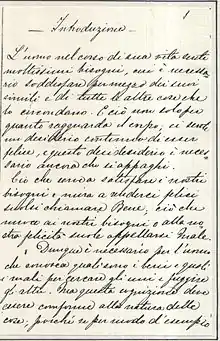 Only one work of Caruana is as yet known to exist. It is simply called Filosofia (Philosophy).[2] The work is still in manuscript form.[3] It is written in Italian, and contains 184 folios in Caruana’s own handwriting. The document is divided into an introduction, chapters, and paragraphs.