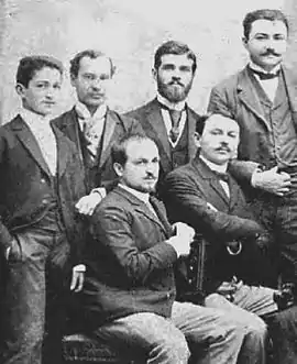 George Diamandy (first from the left, seated) and brother Constantin (standing behind him), in an 1890 photograph